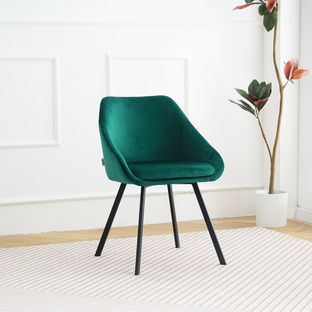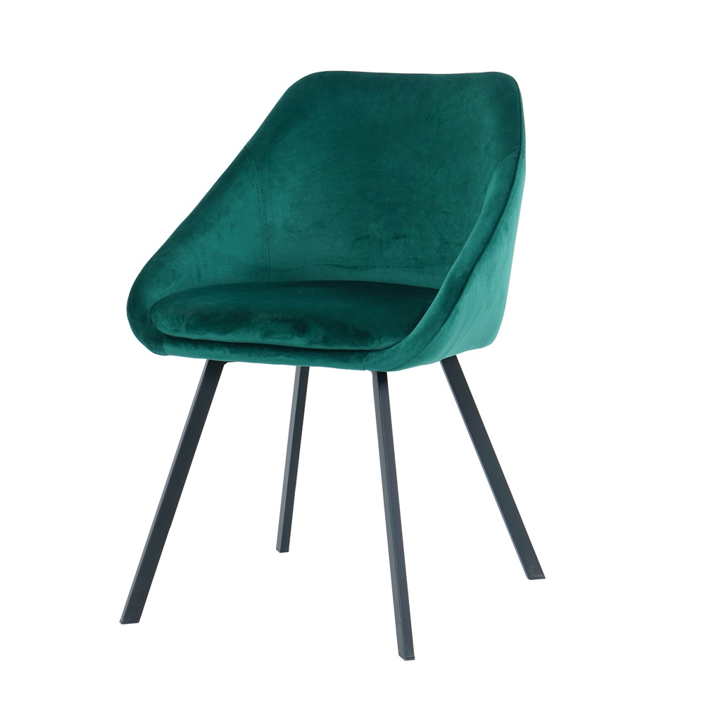 Gana Samta krēsls zaļš ar melnām metāla kājām.