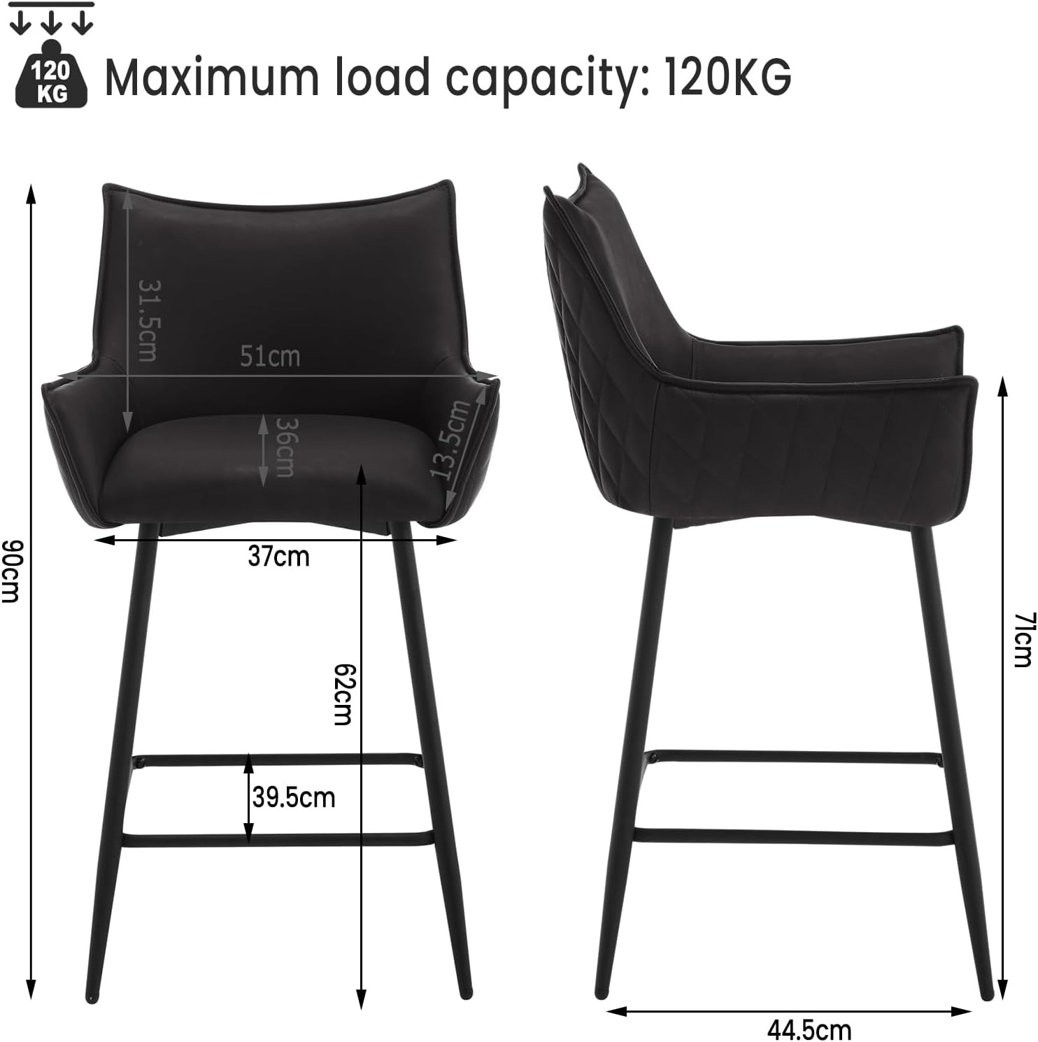 Pusbāra krēsls antracīta 62cm. Melnas metāla kājas.